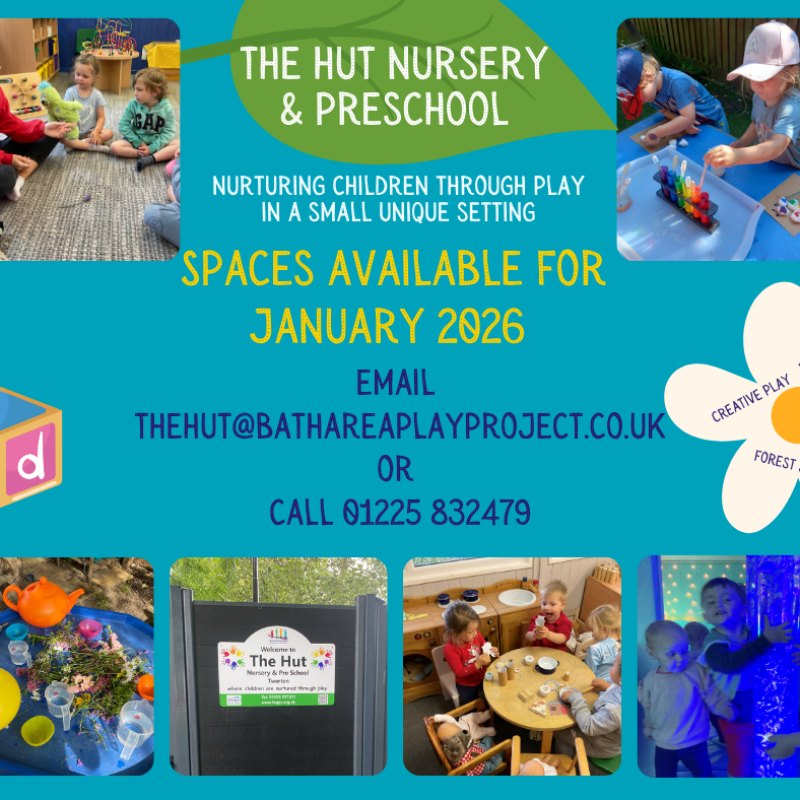 We still have some spaces for children available. Please contact: thehut@bathareaplayproject.co.uk