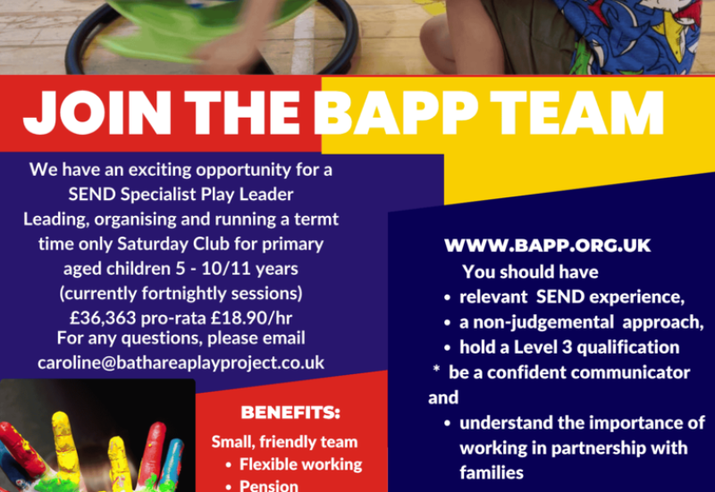 Bath Area Play Project are a small voluntary organisation established in 1979 to support the child’s right to play and facilitate a range of play opportunities for children of all ages and abilities.